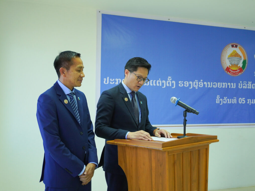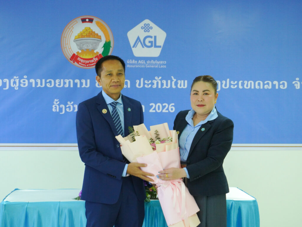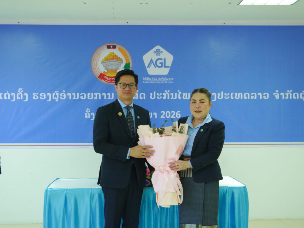 Assurances General Laos (AGL) officially announced the appointment of two new Deputy CEOs during a formal ceremony held at its head office. The event was presided over by Mr. Oubane Souphida, Head of the Organization and Personnel Department of the Ministry of Finance, and attended by the company’s full staff and management.